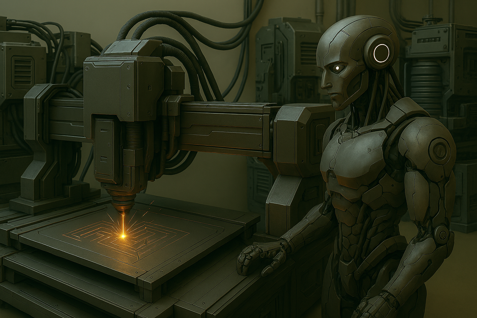 A laser engraving machine carving a detailed design into a metal surface.